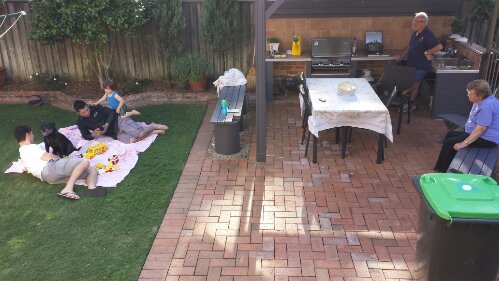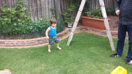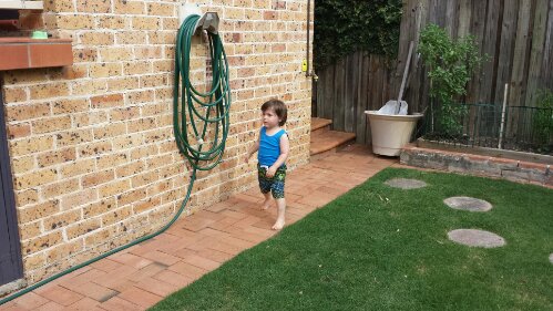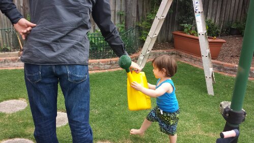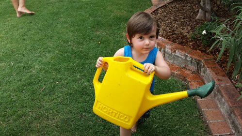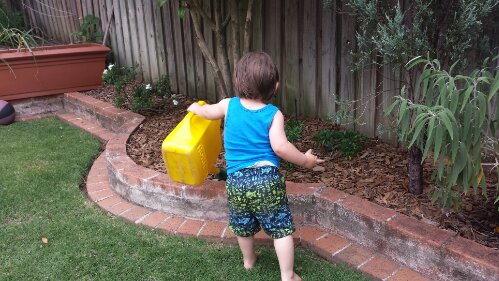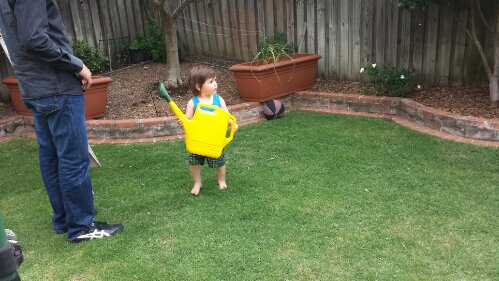 Watering Nonna & Nonno’s garden with Uncle Simon