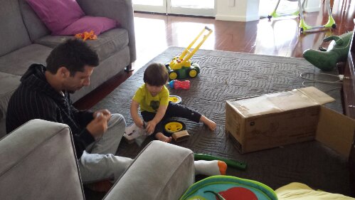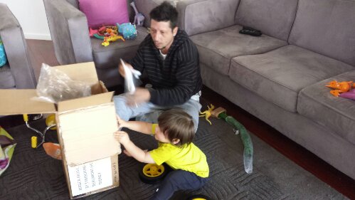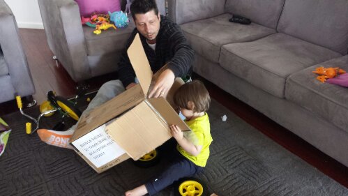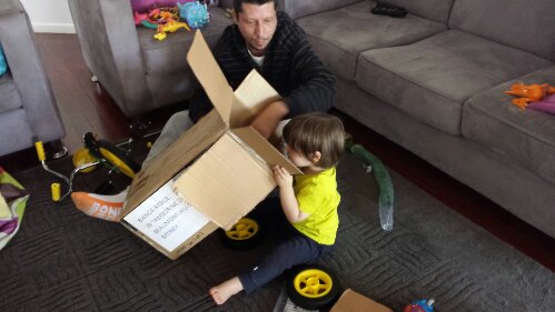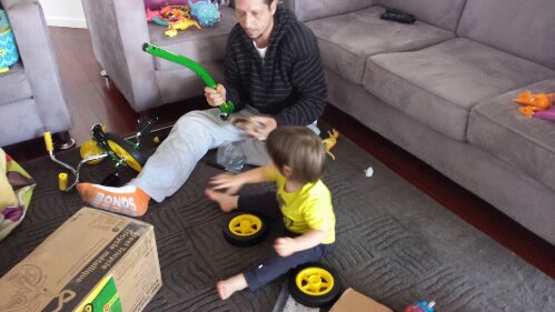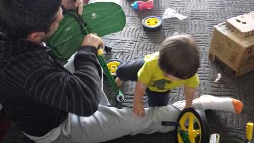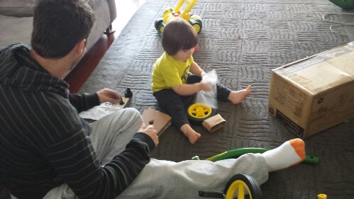Helping Daddy put together my tricycle (take 2 with my tricycle)!