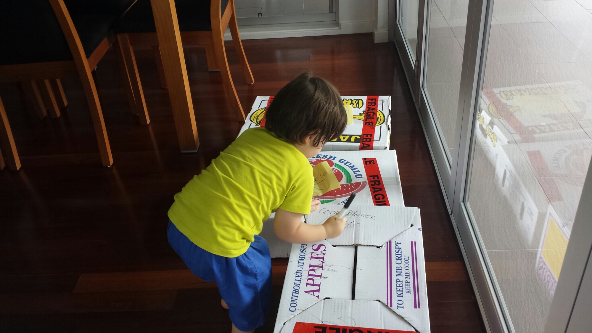 Helping Mummy label our moving boxes