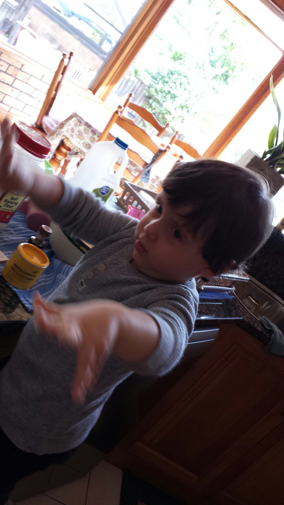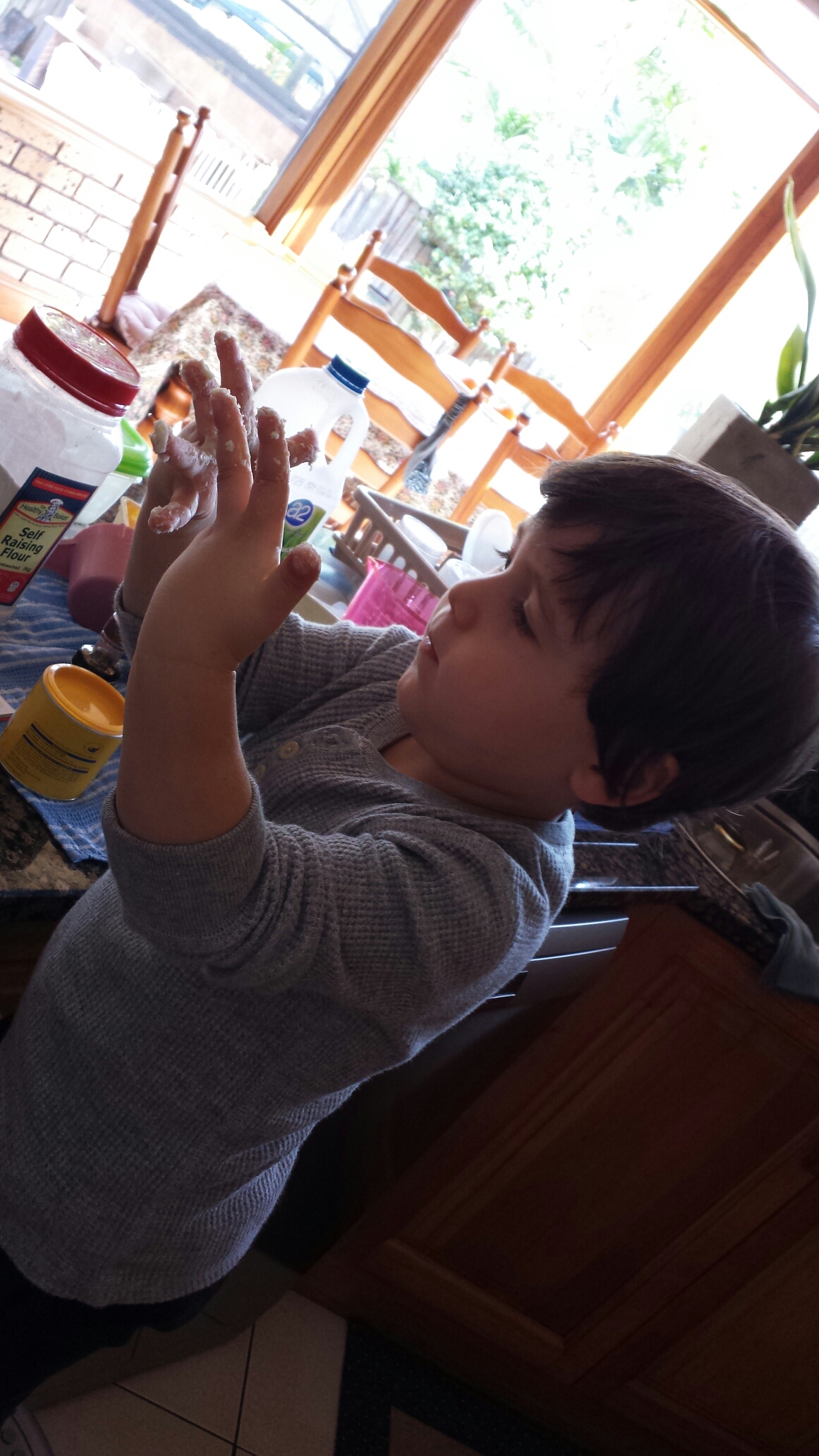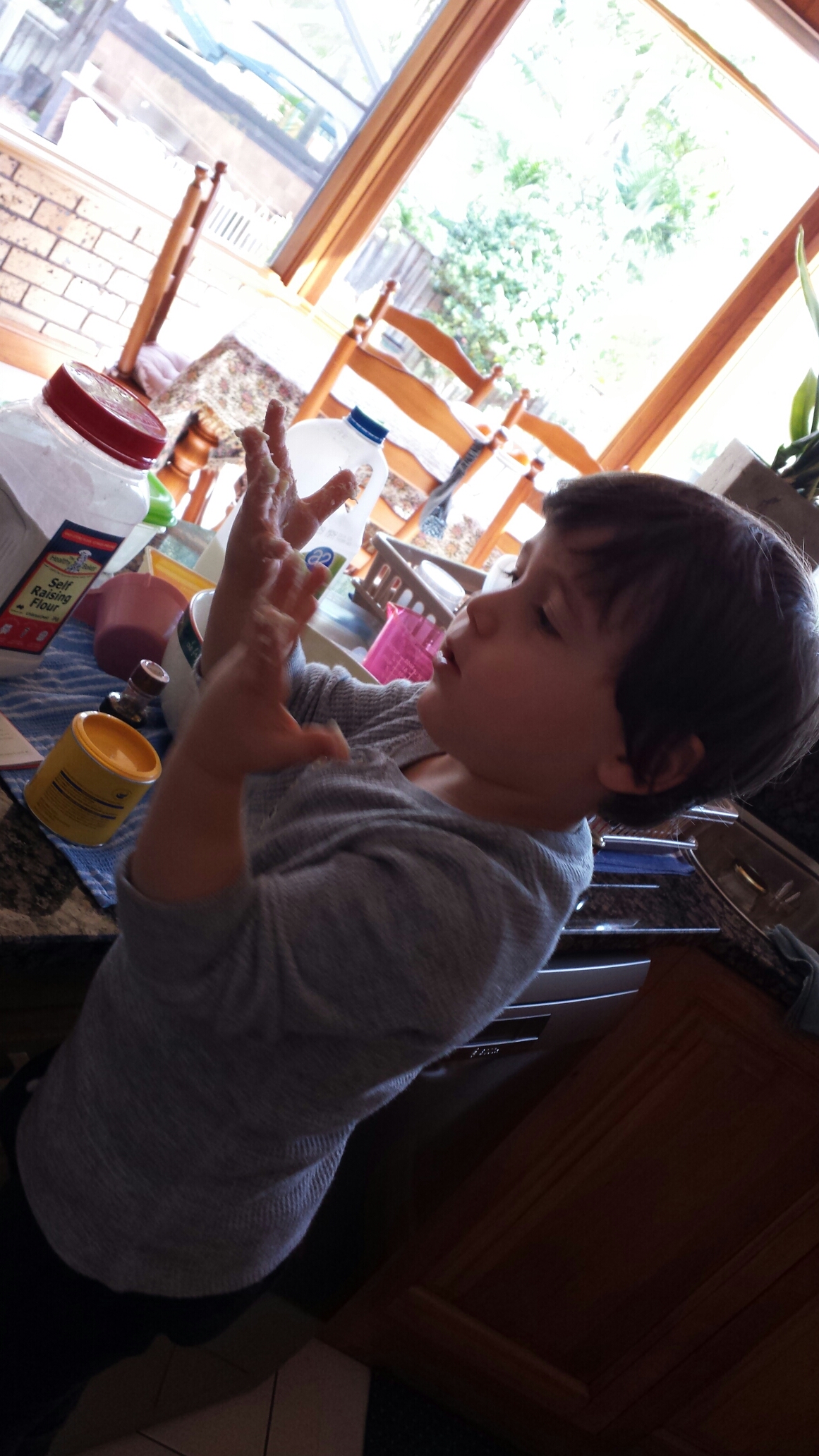 Baking with Mummy, but I don’t like my hands being dirty. Please clean them Mummy