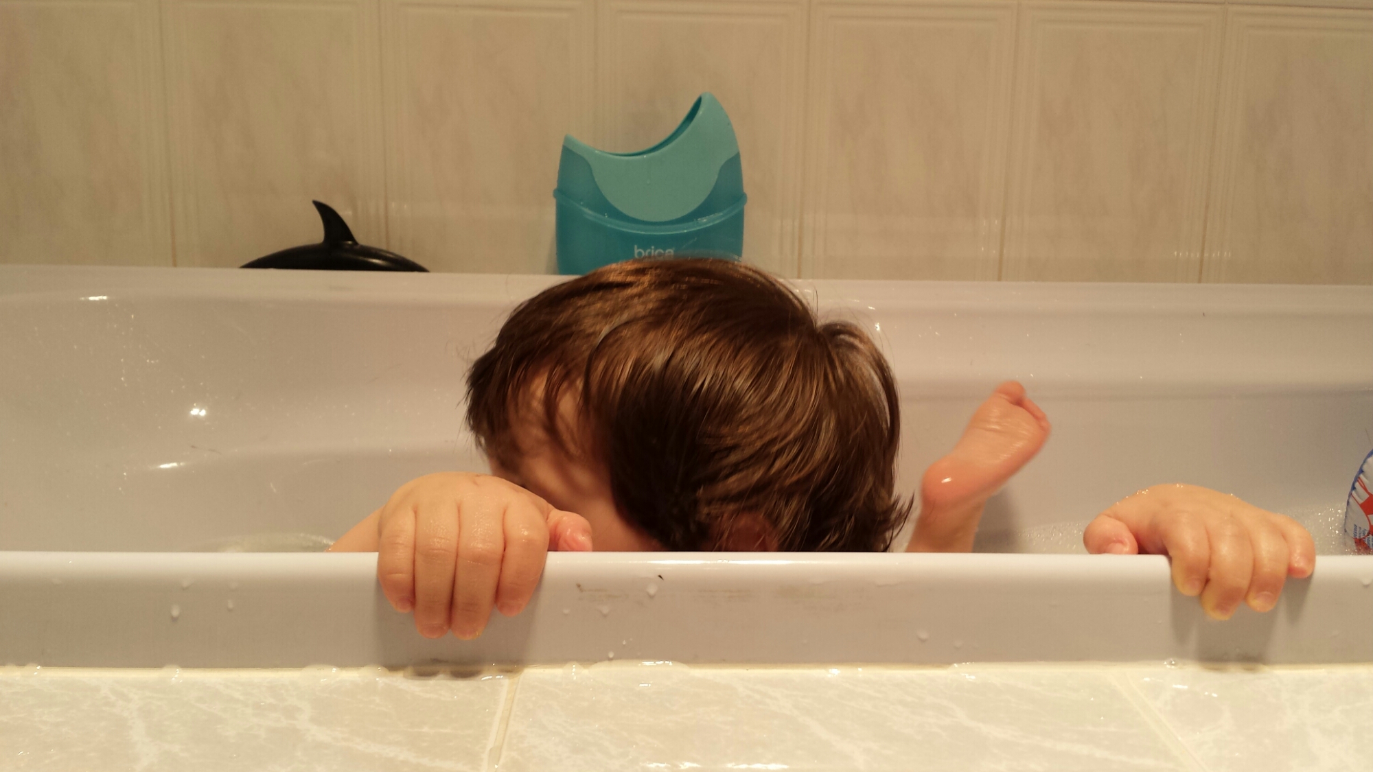Being a little cheeky monkey in the bath