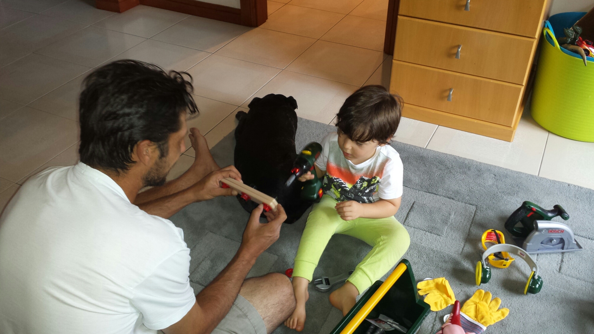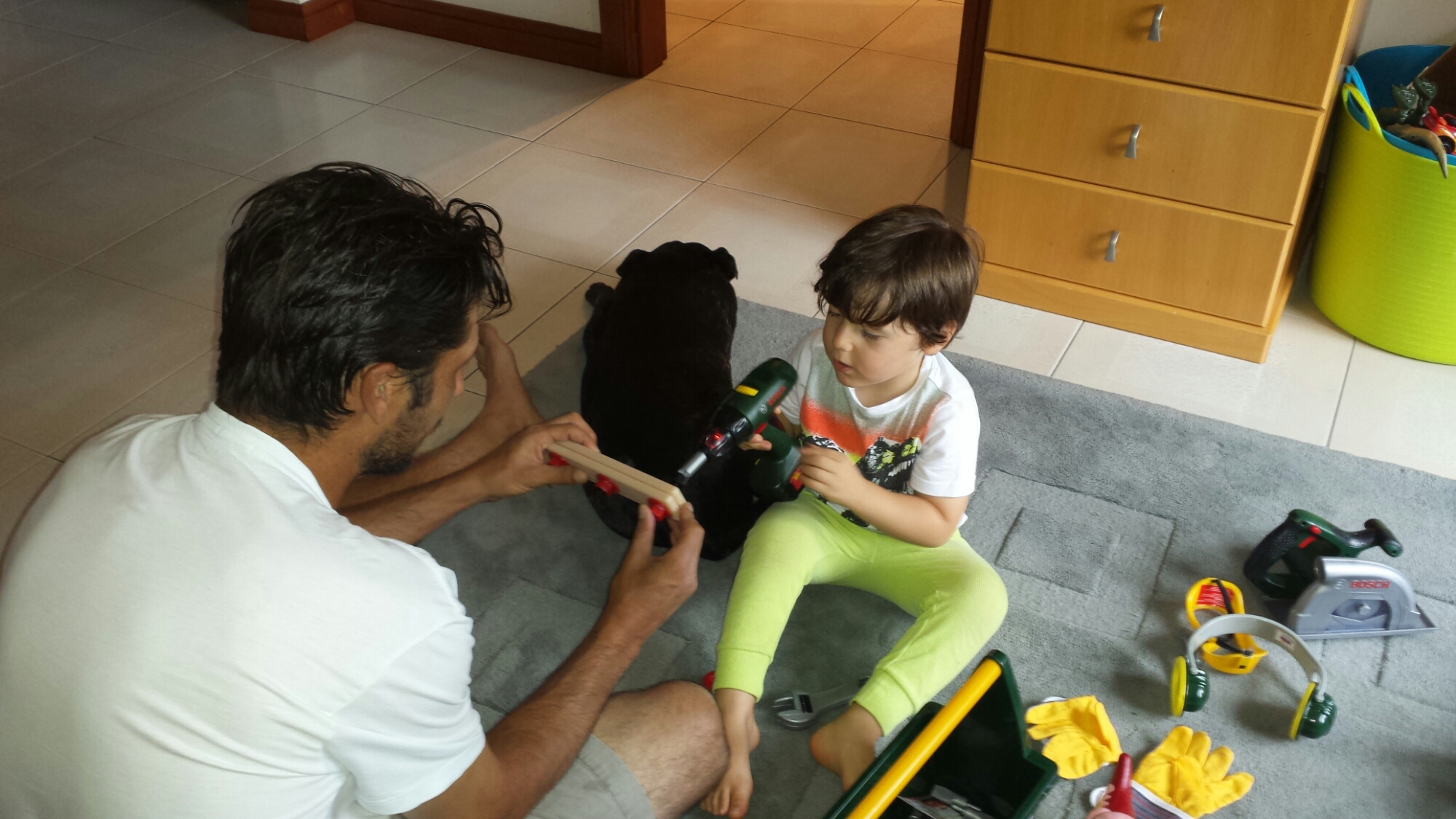 Daddy is teaching me how to screw in nails with my drill that he brought me from Bunnings for my birthday