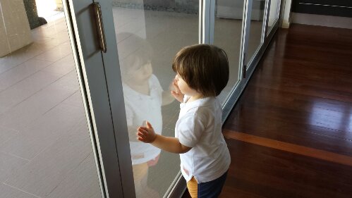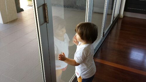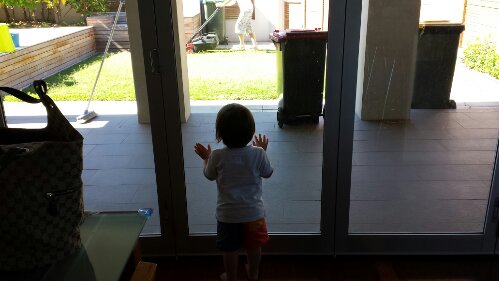 Watching Daddy mow the lawn