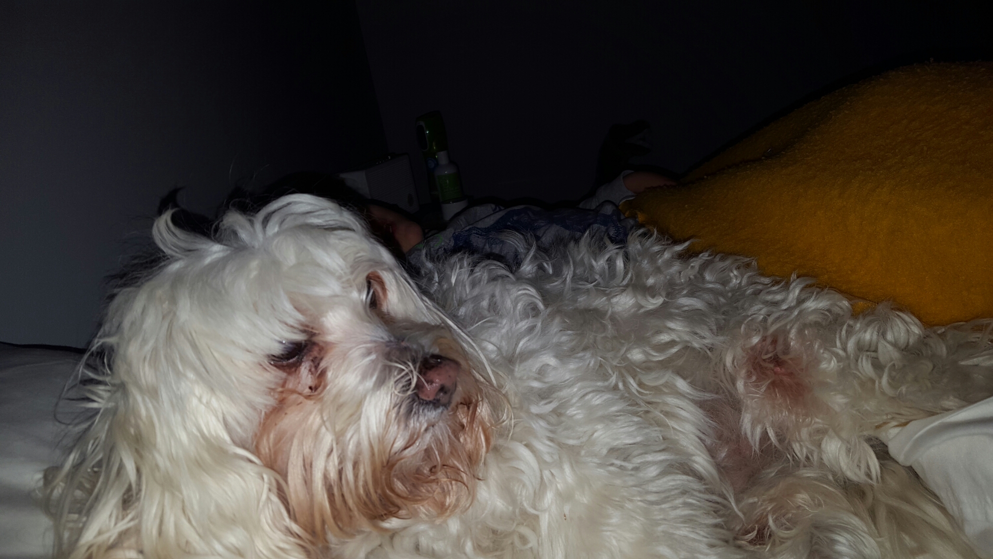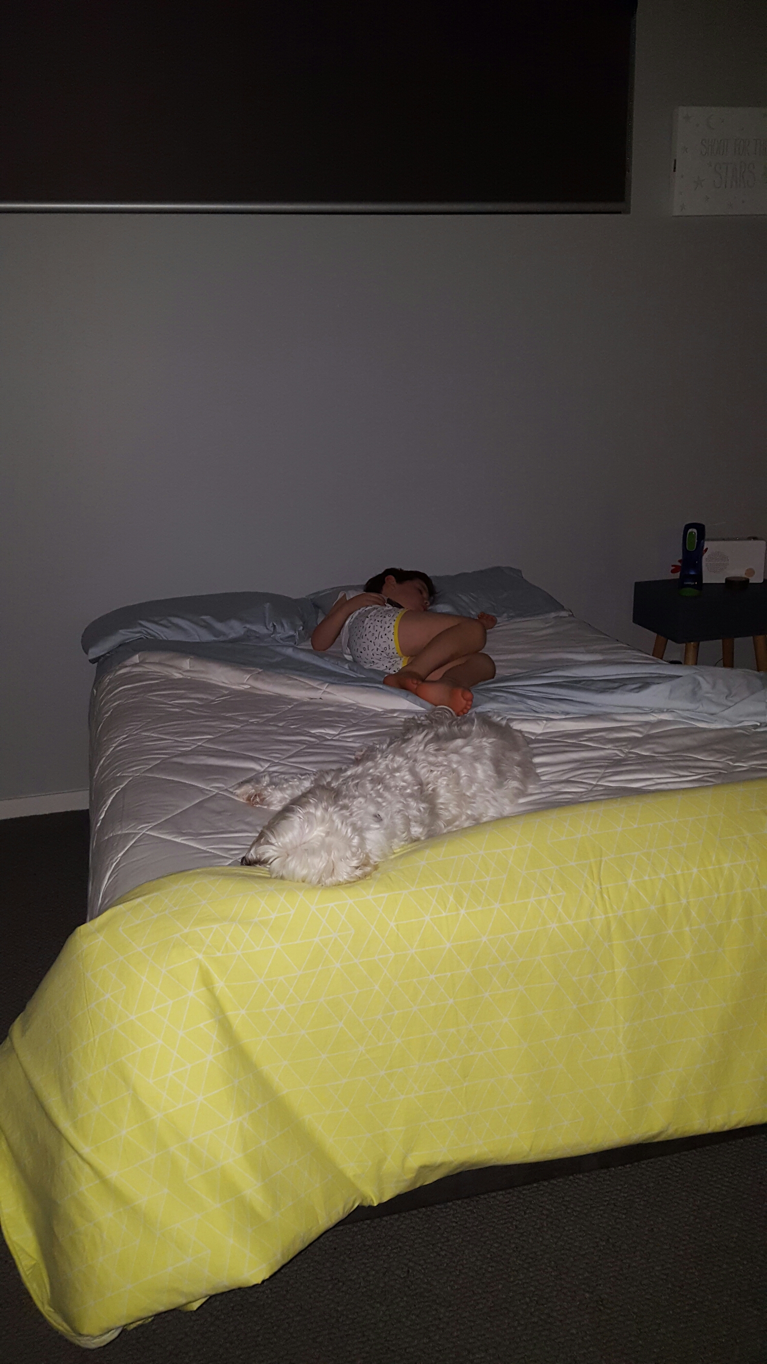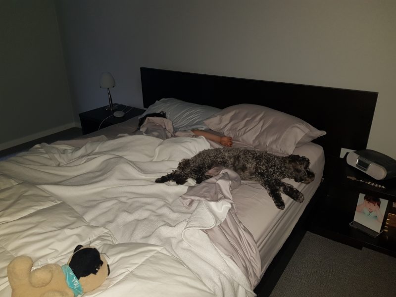 This is most night’s, sharing my bed with Shooby