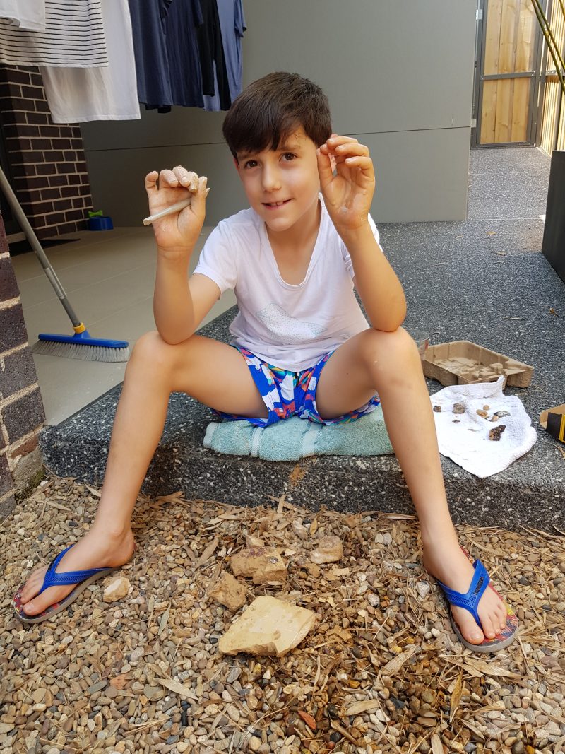 Thank you Uncle Simon, Aunty Pina, Nila & Japser for my Christmas present – I loved digging out the fossils