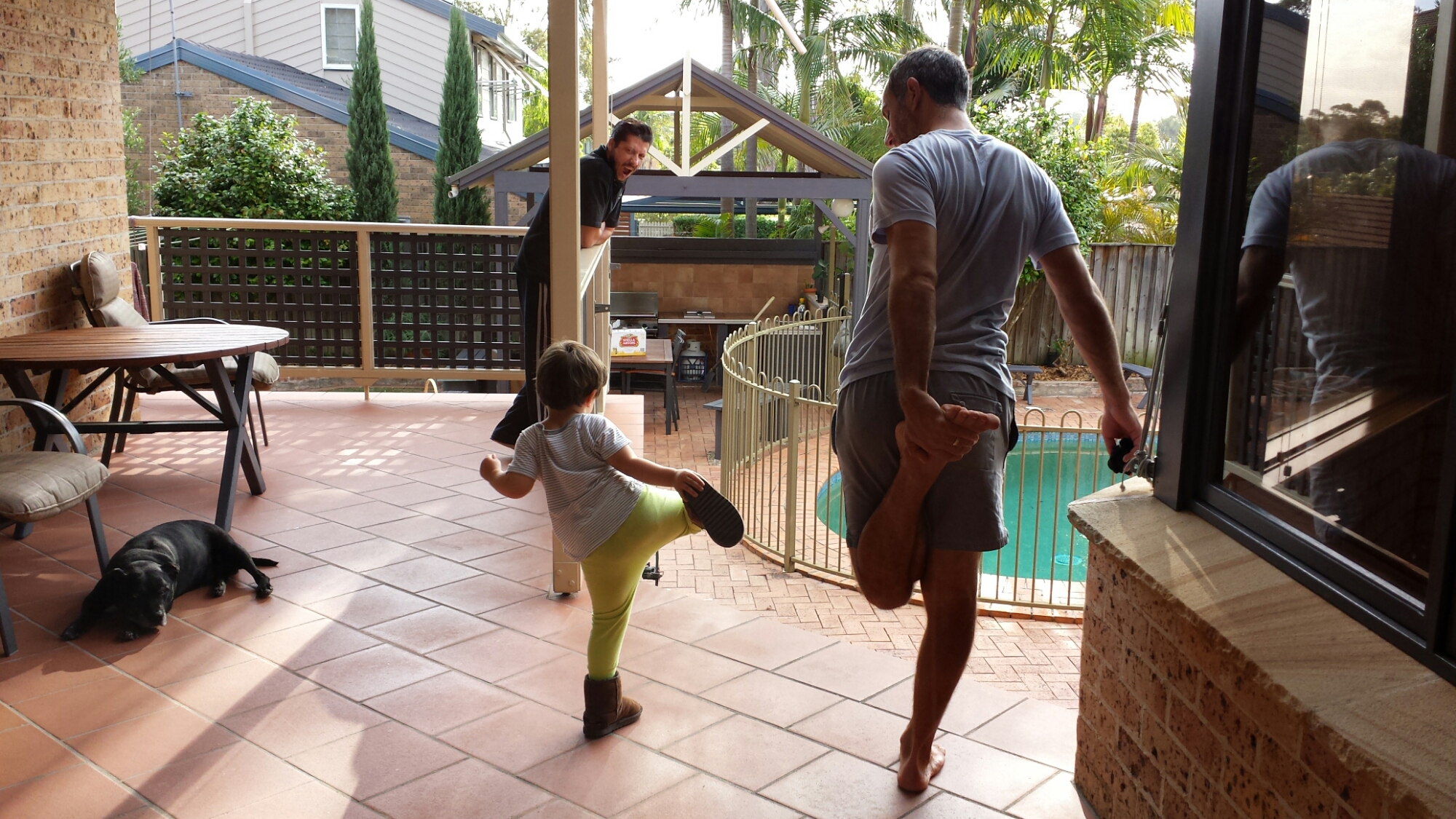 Doing some stretches with Uncle Simon
